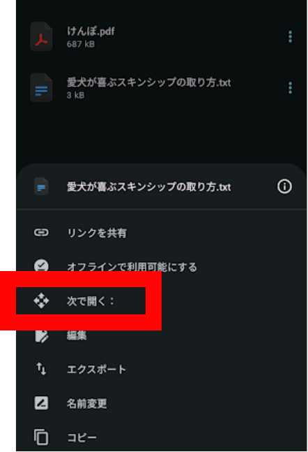 4.「次で開く」をタップします。
