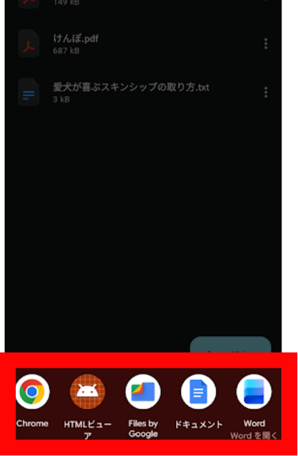 5.ファイルを開くことができるアプリの一覧が表示されます。使いたいアプリを選択します。