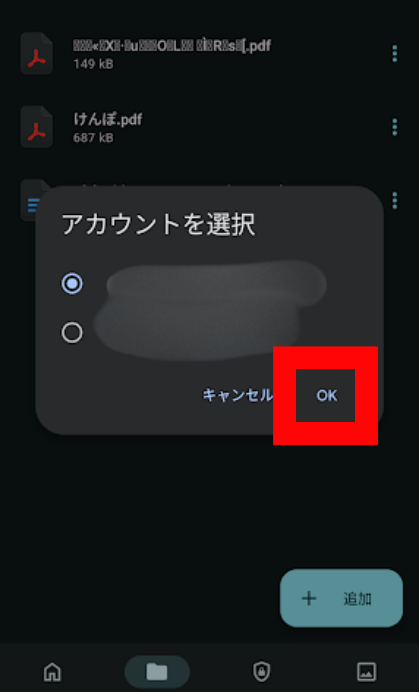 7.アカウントを選択し「OK」をタップします。
