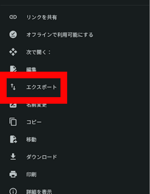 「エクスポート」の具体的な手順を解説します。