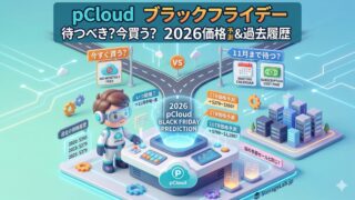 この記事でわかること pCloudブラックフライデーの過去の開催日程・価格履歴(2020年〜) ブラックフライデーは本当に年間最安値なのか? 2026年のブラックフライデーの予測時期と予想価格 「今すぐ買う」vs「11月まで待つ」の判断基準...