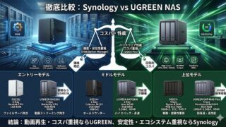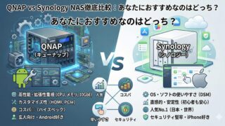 今回は、QNAPとSynologyのNASを4つの観点で徹底比較し、それぞれのNASがどのような人にとっておすすめなのか解説します。QNAP の特徴QNAP(キューナップ)は、台湾に本社を置くNASメーカーで、ハードウェアのスペックや拡張性...